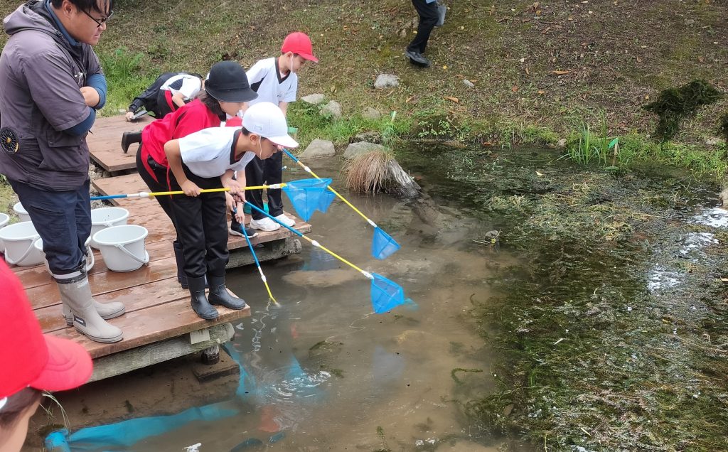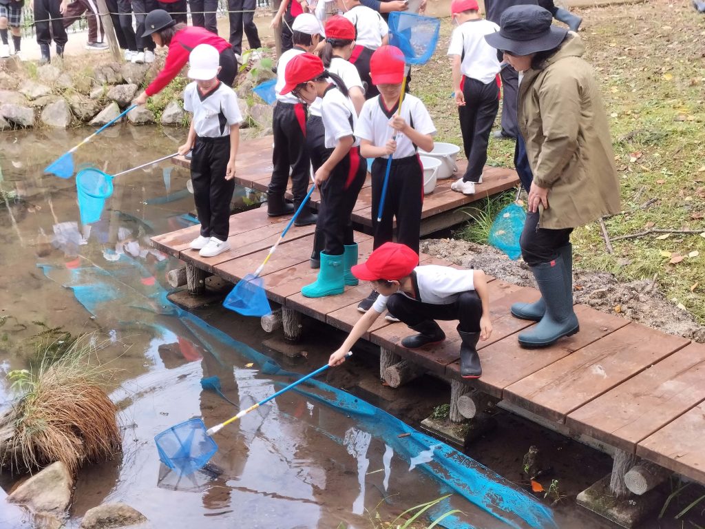 先日、学校の里山・ビオトープを再整備する事業の一環で校内の池の水を抜くときに、理科教員の指導のもと、3年生の子どもたちで水辺の生き物をすくい上げました。カエルやタニシ、ゲンゴロウやヤゴを見つけたときの子どもたちの歓声を聞き、屋外での体験が子どもたちの確かな学びにつながると感じました。