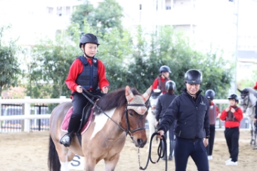 厩舎には複数の馬・ポニーがいます。子どもたちは馬とのふれあいを通して豊かな情操を育み、広々とした馬場での乗馬体験を通して豊かな人間性を育みます。