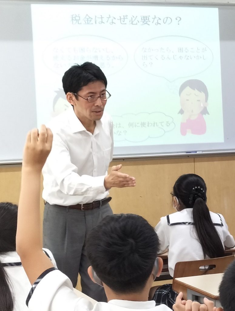 7月4日(木)、6年生の金融教育の一環として、税理士の先生による租税教室を行いました。税金クイズでは、税金には約50種類あること、国の歳入に占める租税の割合は多い順に消費税、所得税、法人税であることなどが出題され、「授業で習った!」という声も上がりました。