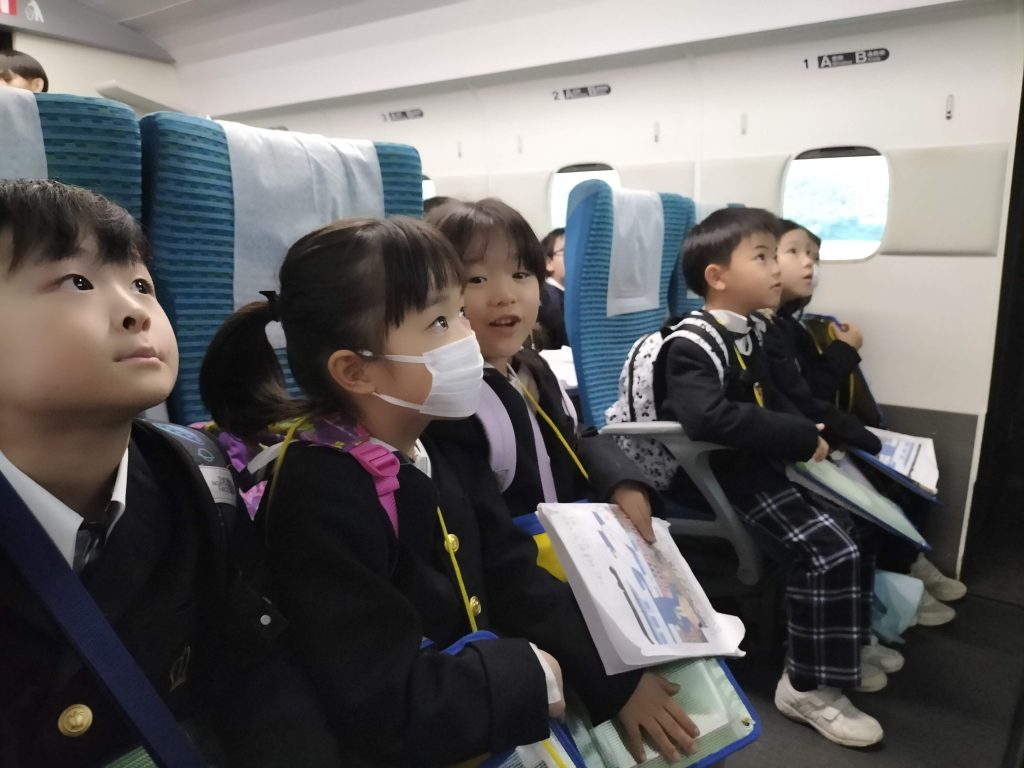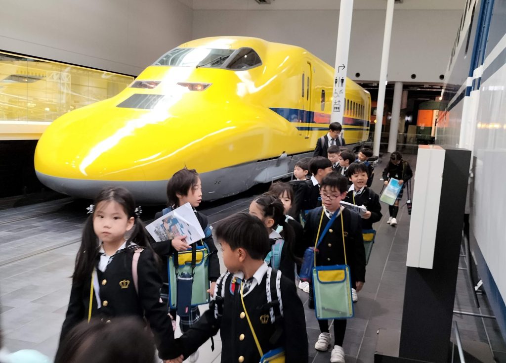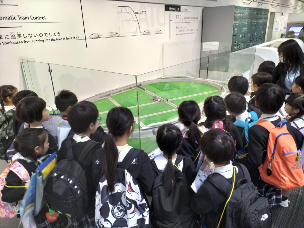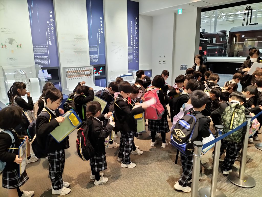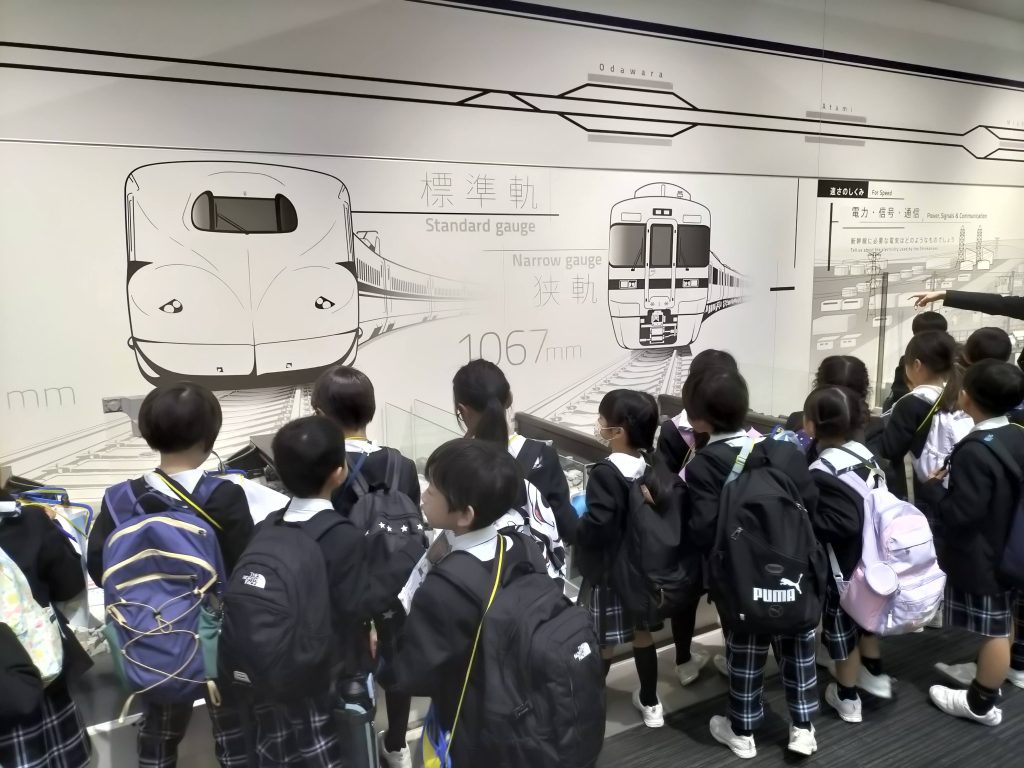 12月3日(水)、1年生が社会見学で「リニア・鉄道館」を訪れ、高速鉄道技術の進歩や、鉄道が社会に与えた影響について、映像を見たり、模型を操作したり、きっぷを自動改札機に通したりして、楽しく学びました。リニア車両をイメージした室内では、時速500キロ走行を体験しました。
