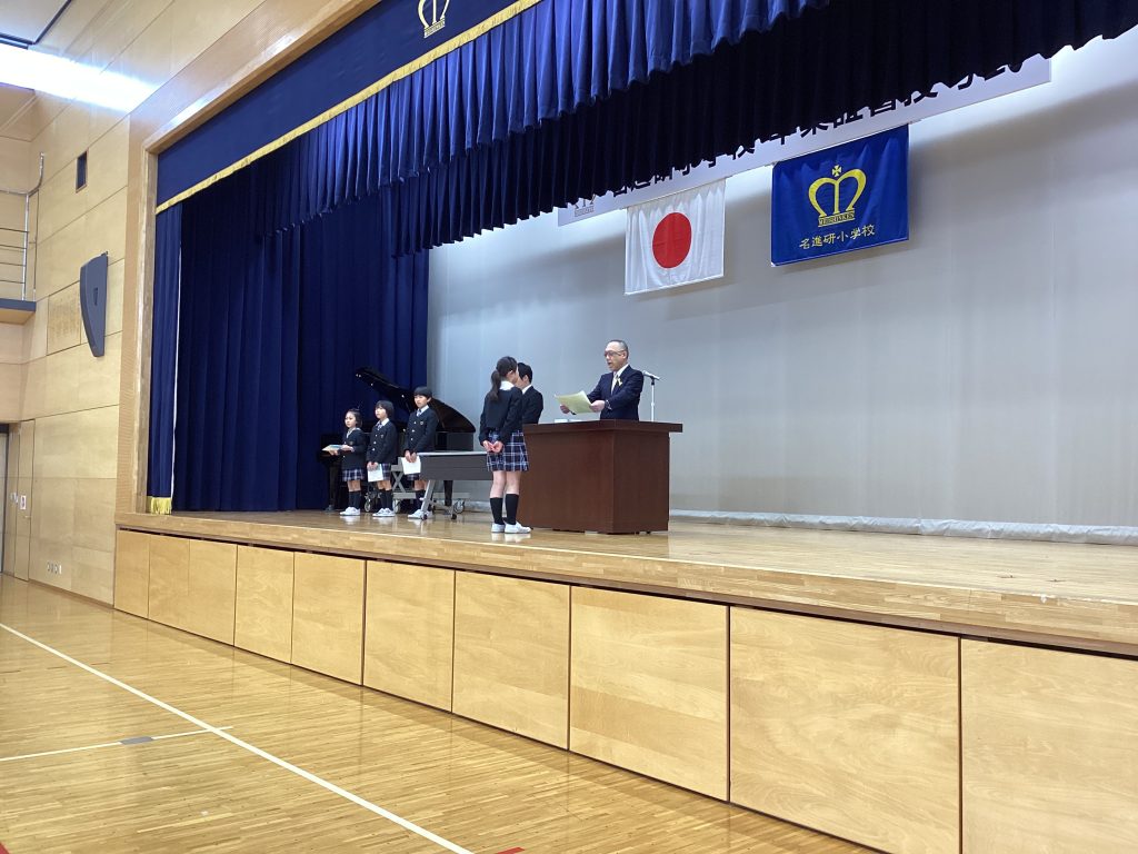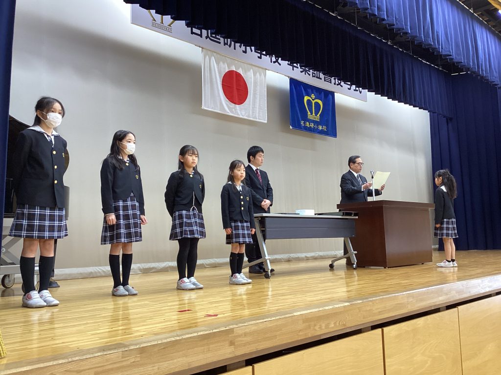 式に先立ち、理事長賞が授与されました。後期において、周囲の模範となる姿を見せてくれた子どもたちです。その堂々とした姿からは、日々の積み重ねの大切さが感じられました。