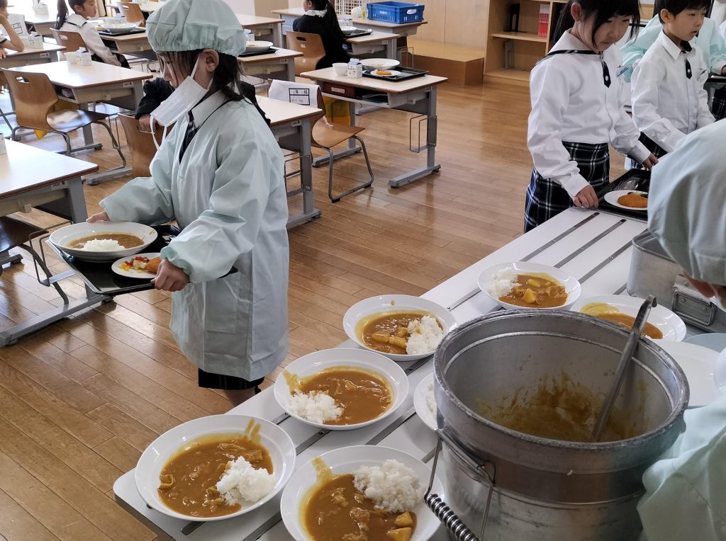 きょうから通常授業。1年生にとっては初めての給食です。